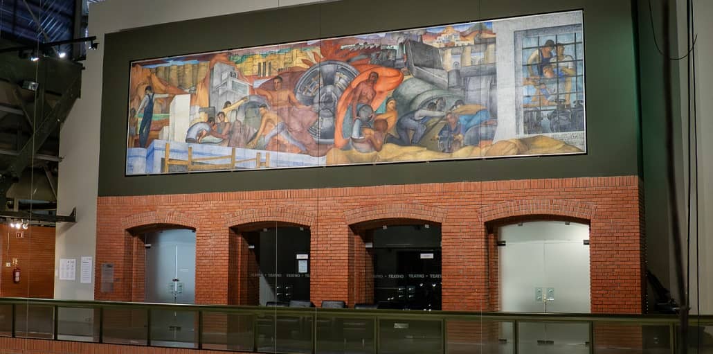 En el marco de la celebración del 30 aniversario del Consejo para la Cultura y las Artes de Nuevo León y cumpliendo 25 años en comodato del mural “Alegoría de la Producción” de Fermín Revueltas, la Secretaría de Cultura de Nuevo León y CONARTE han realizado entre los meses de agosto a octubre los trabajos de conservación y mantenimiento de la obra que se exhibe en la planta alta de la Nave II del Centro de las Artes.