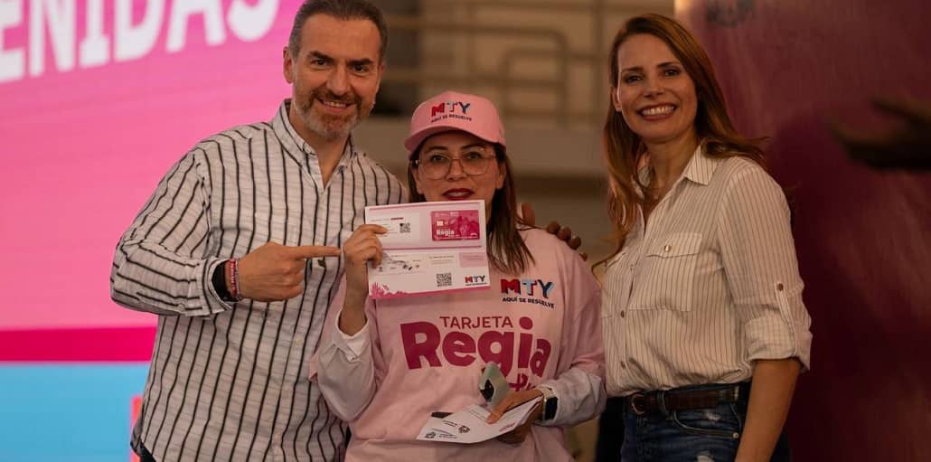 A la entrega de la Tarjeta Regia Plus acudieron el jefe de gabinete, Fernando Margáin; los secretarios de Administración, Marcelo Segovia Páez; de Participación Ciudadana, Rafa Ramos y de Desarrollo Humano e Igualdad Sustantiva, Karina Barrón.