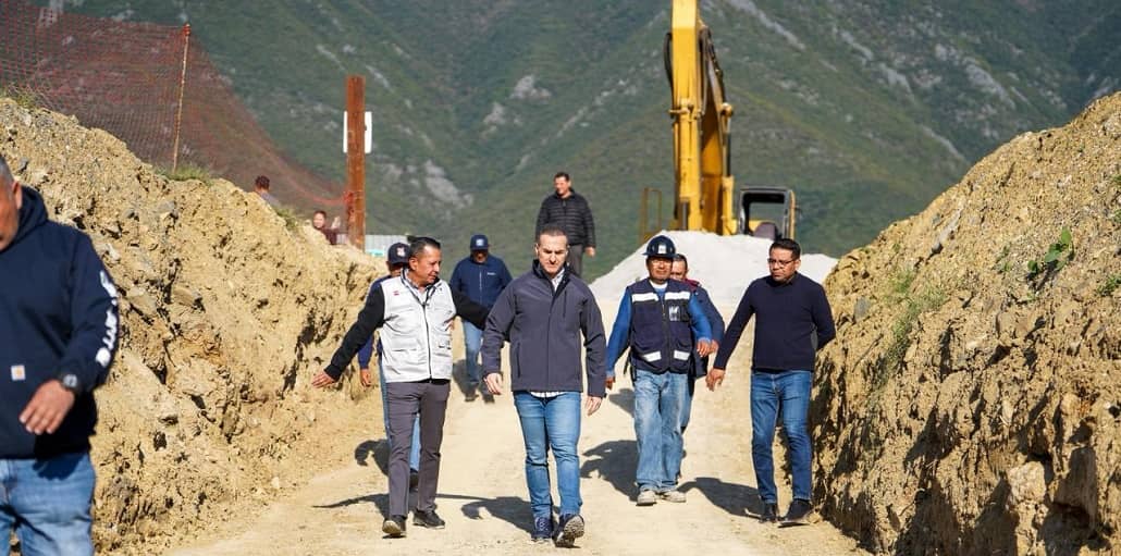 Como parte del recorrido, el alcalde supervisó también el corredor Acueducto–Antiguo Camino a Villa de Santiago, donde se desarrolla la construcción y rehabilitación de 1,250 metros lineales de avenida con tres carriles por sentido. Este frente de obra, que incorpora banquetas, guarniciones, cruces peatonales y alumbrado, registra actualmente un avance del 55 por ciento.